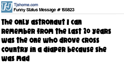 X says The only astronaut I can remember from the last 20 years was the one who drove cross country in a diaper because she was mad