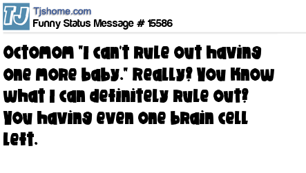 - # 15611 ...just heard that the "Octomom" won't rule out having another baby...well then, I think we can safely rule out her having even one more brain cell left...