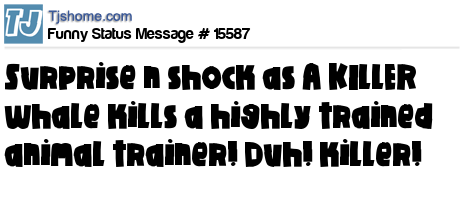 - # 15764 heard some folks trying to change the name of Killer Whale to something less threatening. Sea World, Killer Whale was quoted as saying, "I'm back baby!"