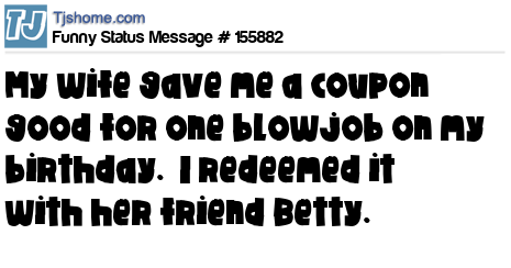 X says My wife gave me a coupon good for one blowjob on my birthday. I redeemed it with her friend Betty.