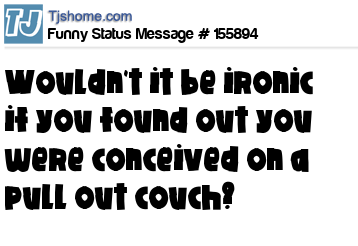 X Wouldn't it be ironic if you found out you were conceived on a pull out couch?