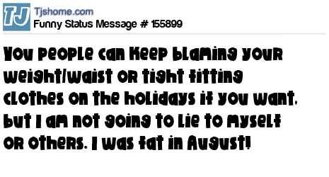 - # 183046 You people can keep blaming your weight or tight fitting clothes on the holidays if you want, but I am not going to lie to myself, most of you were Fat in December too