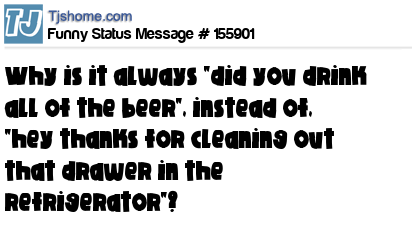 X Why is it always "did you drink all of the beer", instead of, "hey thanks for cleaning out that drawer in the refrigerator"?