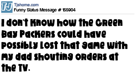X I don't know how the Green Bay Packers could have possibly lost that game with my dad shouting orders at the TV.