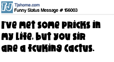 - # 127007 I've met some real pricks in my time but you my friend are the cactus.