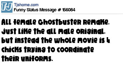 X says All female Ghostbuster remake, just like the all male original, but instead the whole movie is 4 chicks trying to coordinate their uniforms.