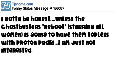 X says I gotta be honest....unless the Ghostbusters "reboot" (starring all women) is going to have them topless with proton packs...I am just not interested.