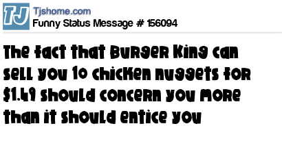 X says The fact that Burger King can sell you 10 chicken nuggets for $1.49 should concern you more than it should entice you