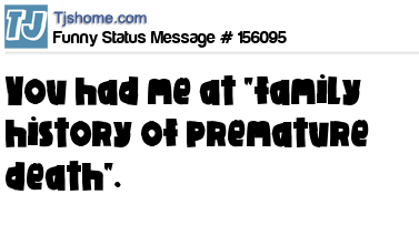 - # 45723 If reading this status message caused premature death, you may be entitled to compensation. Please call our law offices if this has happened to you