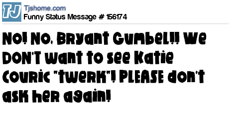 X No! No, Bryant Gumbel!! We DON'T want to see Katie Couric "twerk"! PLEASE don't ask her again!