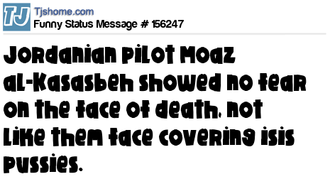 X Jordanian pilot Moaz al-Kasasbeh showed no fear on the face of death, not like them face covering isis pussies.