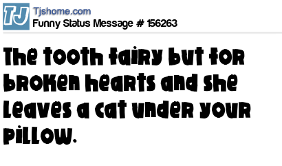 X says The tooth fairy but for broken hearts and she leaves a cat under your pillow.