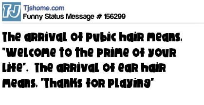 X says The arrival of pubic hair means, "Welcome to the prime of your life". The arrival of ear hair means, "Thanks for playing"