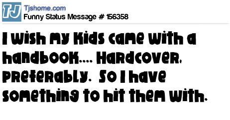 X says I wish my kids came with a handbook.... Hardcover, preferably. So I have something to hit them with.