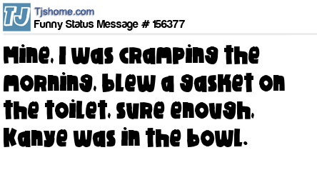 X says Mine, I was cramping the morning, blew a gasket on the toilet, sure enough, Kanye was in the bowl.