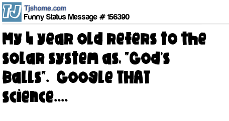 X says My 4 year old refers to the solar system as, "God's Balls". Google THAT science....