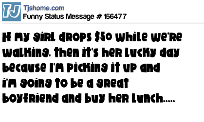 X if my girl drops $50 while we're walking, then it's her lucky day because I'm picking it up and i'm going to be a great boyfriend and buy her lunch.....