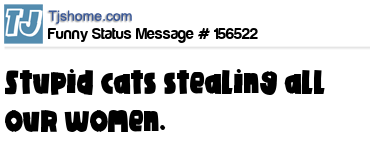 - # 164222 Women and Cats: I've never understood why women love cats. In other words, every quality that women hate in a man, they love in a cat.