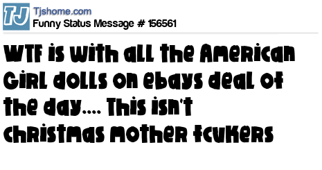 X says WTF is with all the American Girl dolls on ebays deal of the day.... This isn't christmas mother fcukers