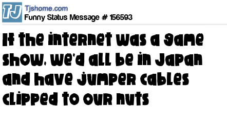 X says If the internet was a game show, we'd all be in Japan and have jumper cables clipped to our nuts