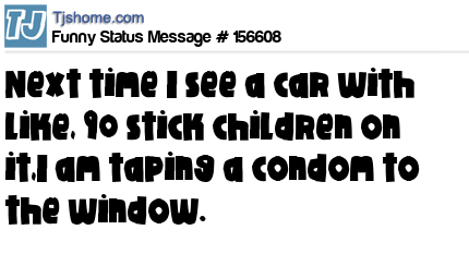 - # 145764 Next time I see a car with like, 90 stick children on it, I am taping a condom to the window.