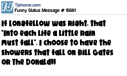 X says If Longfellow was right, that "Into each life a little rain must fall", I choose to have the showers that fall on Bill Gates or The Donald!!