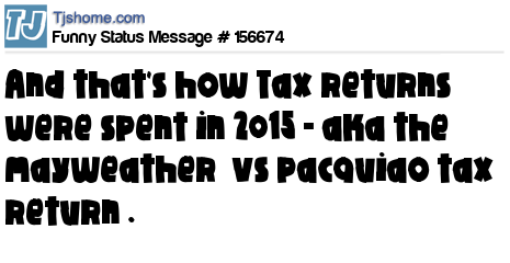X says And that's how Tax returns were spent in 2015 - aka the mayweather vs pacquiao tax return .