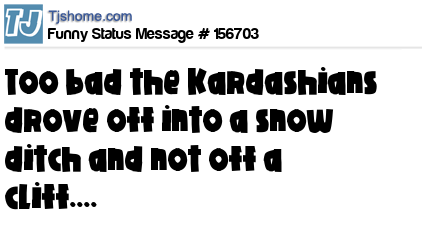 X Too bad the Kardashians drove off into a snow ditch and not off a cliff....