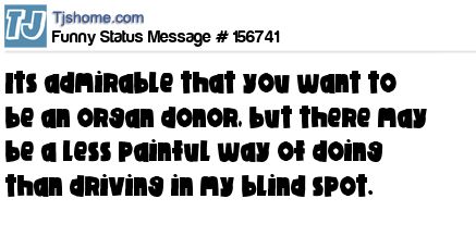 X says Its admirable that you want to be an organ donor, but there may be a less painful way of doing than driving in my blind spot.