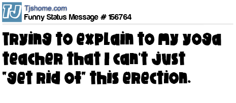 X says Trying to explain to my yoga teacher that I can't just "get rid of" this erection.