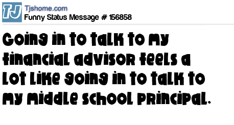 X says Going in to talk to my financial advisor feels a lot like going in to talk to my middle school principal.