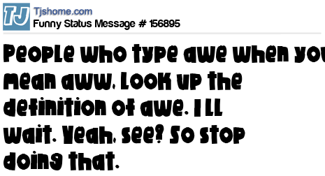 X says People who type awe when you mean aww, look up the definition of awe. I’ll wait. Yeah, see? So stop doing that.