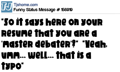 X says "So it says here on your resume that you are a 'master debater'?" "Yeah, umm... well... that is a typo"
