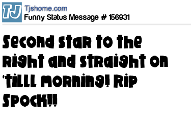 X Second star to the right and straight on 'tilll morning! Rip Spock!!
