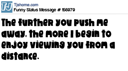 X says The further you push me away, the more I begin to enjoy viewing you from a distance.