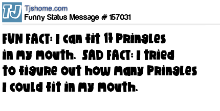 X says FUN FACT: I can fit 17 Pringles in my mouth. SAD FACT: I tried to figure out how many Pringles I could fit in my mouth.