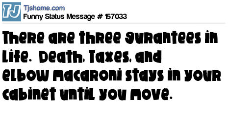 X says There are three gurantees in life. Death, Taxes, and elbow macaroni stays in your cabinet until you move.
