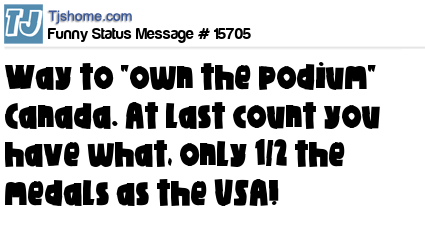 - # 15880 Plane ticket to Vancouver $800, ticket to the gold medal game $2500, Canada breaking the record for the most gold medals won at an olympic games at the exspense of the USA unbelievably frickin PRICELESS!! See you in 4 years SUCKA'S!!!