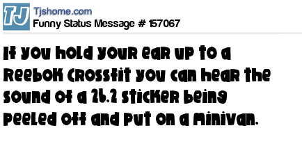 X says If you hold your ear up to a Reebok Crossfit you can hear the sound of a 26.2 sticker being peeled off and put on a minivan.