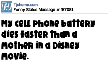 X says My cell phone battery dies faster than a mother in a Disney movie.