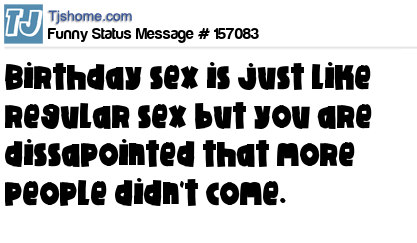 X says Birthday sex is just like regular sex but you are dissapointed that more people didn't come.