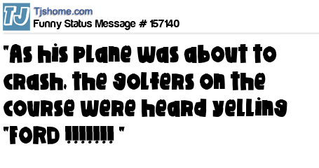 X says "As his plane was about to crash, the golfers on the course were heard yelling "FORD !!!!!!! "