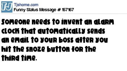 X says Someone needs to invent an alarm clock that automatically sends an email to your boss after you hit the snoze button for the third time.
