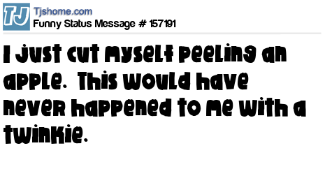 X says I just cut myself peeling an apple. This would have never happened to me with a twinkie.