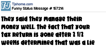 X says They said they manage their money well, the fact that your tax return is gone after 2 1/2 weeks determined that was a lie