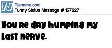 - # 206599 I have one nerve left, and you’re dry humping it.