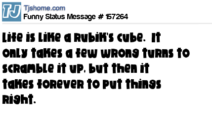 X is Life is like a rubik's cube. It only takes a few wrong turns to scramble it up, but then it takes forever to put things right.