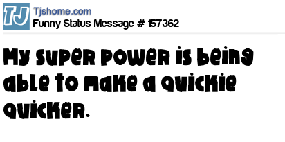 X says My super power is being able to make a quickie quicker.