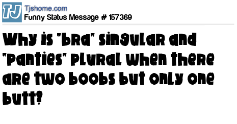 X says Why is "bra" singular and "panties" plural when there are two boobs but only one butt?