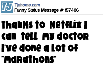 X says thanks to Netflix I can tell my doctor I've done a lot of "marathons"